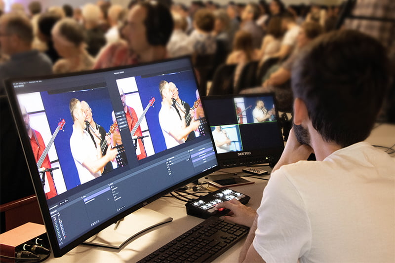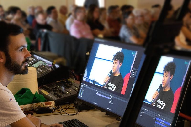 L’équipe captation vidéo enregistre les cultes et réunion en direct de l’église afin de les retransmettre ensuite sur YouTube.
